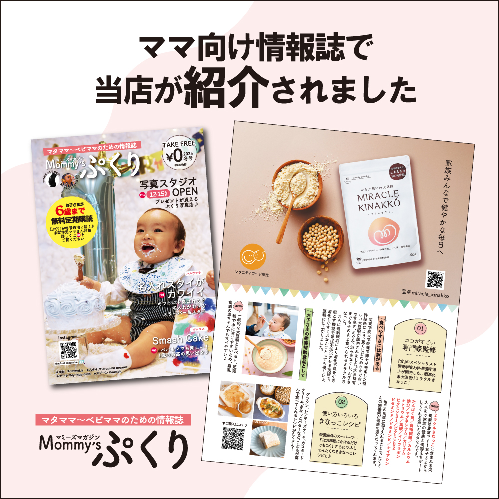 子育て世代に寄り添う“やさしい大豆粉”として取り上げていただき、大変嬉しく思います。